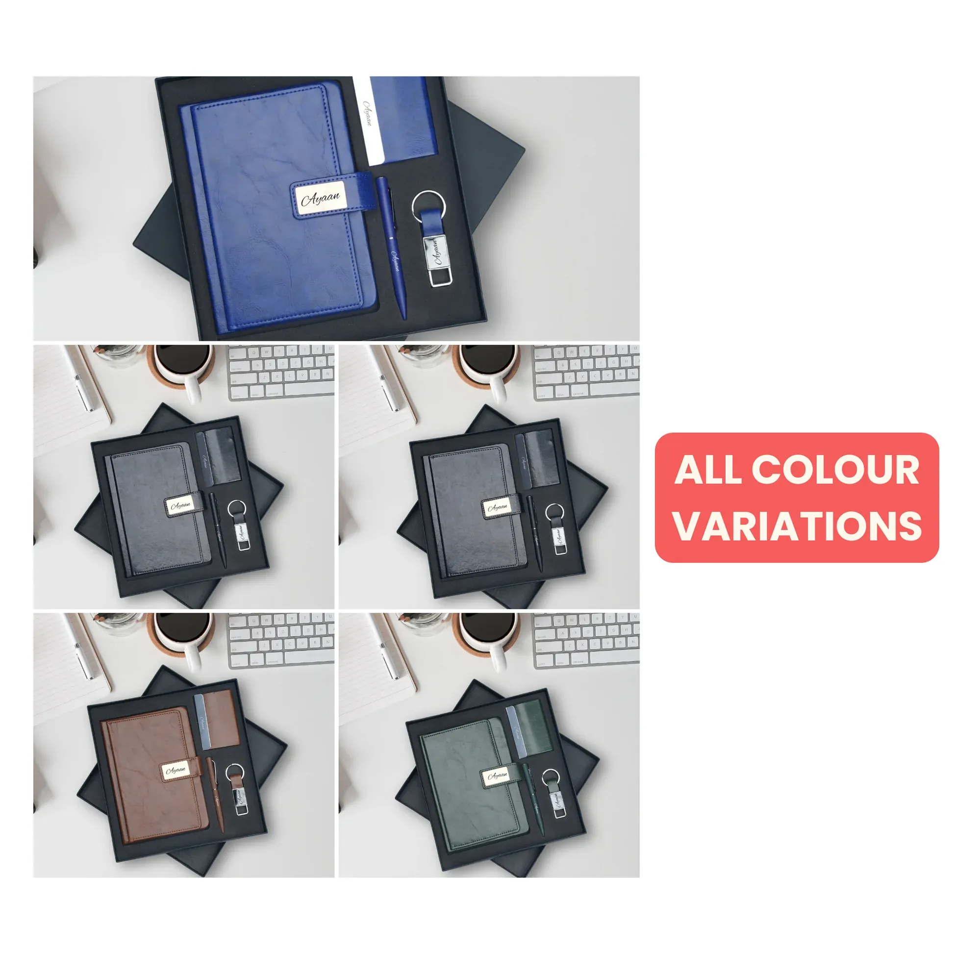 With these personalised accessories, you'll be sure to impress in any professional or personal setting. Order yours today and elevate your style! Diary + Card holder + Pen + KeychainDimensions