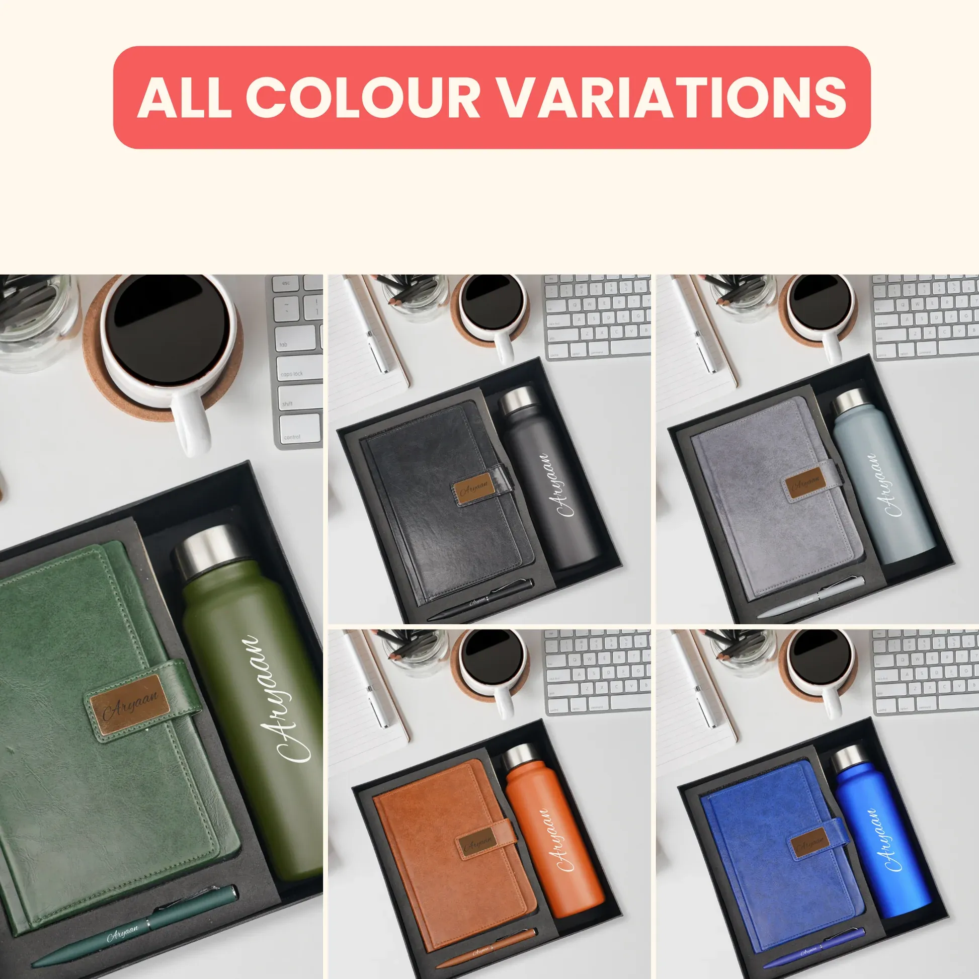 Stay organized and stylish with our Personalised Classy Executive Diary, Classic Metal Pen, and Classic Smart Bottle Combo.